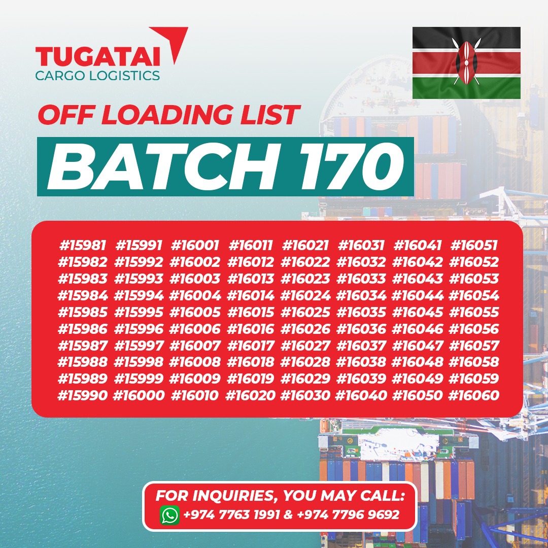#TugataiCargo #Batch166 #GateInUpdate #KenyaCargo #MombasaBound #TrustedLogistics